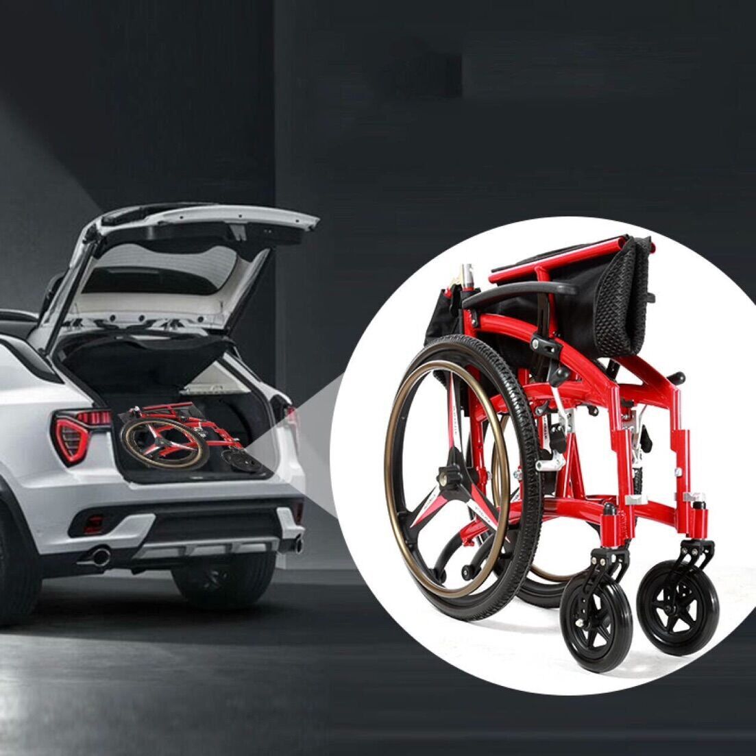 - Product name: Lightweight Aluminium Foldable Car Trunk Manual Wheelchair